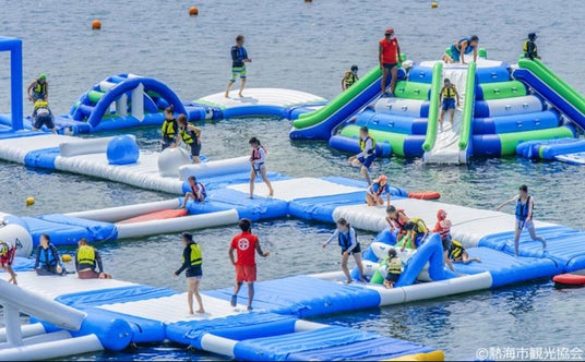 熱海サンビーチウォーターパークは、巨大な海上アスレチックです。