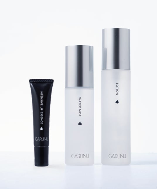 写真左から「GARLINU インテンシブ リップエッセンス」、「GARLINU ウォーターミスト」、「GARLINU ローション」