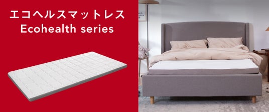 エコヘルスマットレス: 独自の素材「エコヘルス」を使用したウレタンマットレスです。二層構造になっており、上層部のエコヘルスフォームで身体を包み込み体圧を分散し、下層部の高反発層で身体全体を支えることで理想の寝姿勢へと整えます。