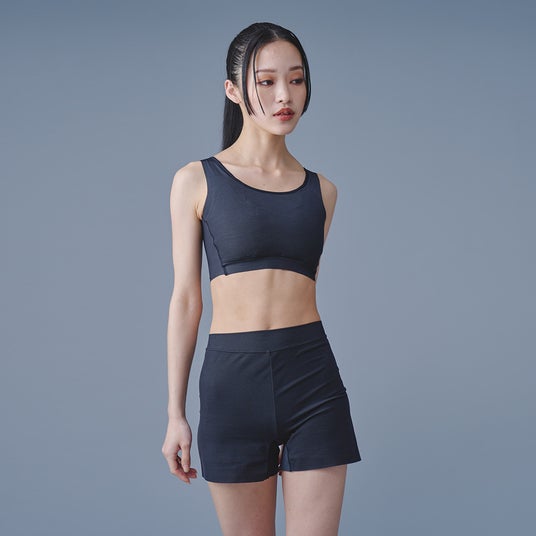 限りなくシームレス、Nstyleの定番 ローンチ当初から愛される定番アイテム・ハーフトップに、履いていることを忘れてしまいそうな心地よさが自慢のリラックスショーツを組み合わせた、同素材の上下セット。