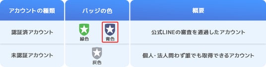 なお、当社LINE公式アカウントは、青色のバッジの付いた認証済アカウントです。当社を名乗る詐欺アカウントに、十分にご注意いただきますようお願いします。■LINE公式アカウントの種類