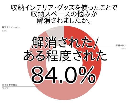 では、収納インテリア・グッズを使ったことで収納スペースの悩みは解消されたのでしょうか。アンケートで尋ねてみました。