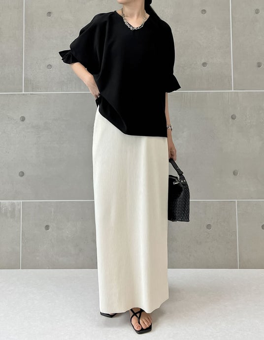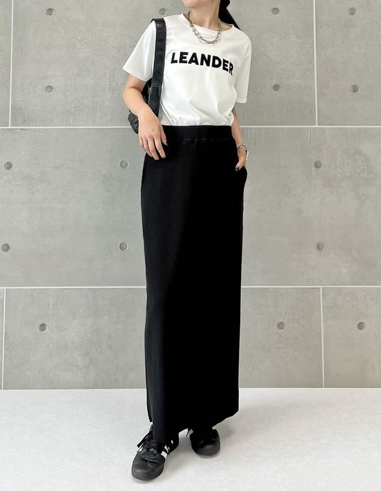 裾に入ったスリットデザインで、足さばきも良く、普段使いしやす着回し力に優れた1着です。
