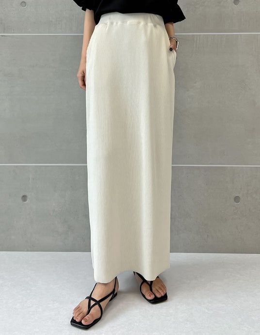 スタイリッシュなラインを引き立てる、リブカットソータイトスカート。