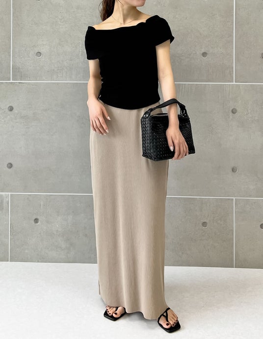 シンプルなデザインながら、身体に程よくフィットし、しなやかな美しいシルエットにもこだわりました。柔らかく伸縮性のあるリブ素材が、快適な着心地を叶えます。