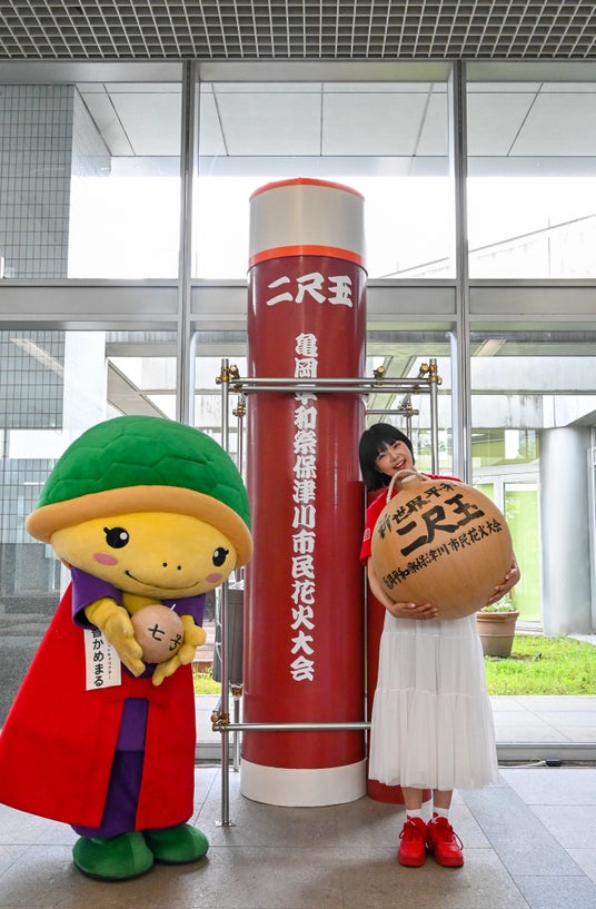 彩羽真矢さんと亀岡市の観光マスコットキャラクター、明智かめまる