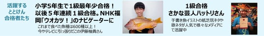 3級(初級)、2級(中級)、1級(上級)の受検級別に各100問、4者択一方式で全国同日一斉開催となります。日本さかな検定の受検者が家庭や職場、学校、また飲食の場で“魚の語り部”となって“さかなの国、ニッポン”の魚食文化を継承してくれることを願っております。
