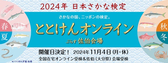 一般社団法人日本さかな検定協会(東京都江東区 代表理事:尾山雅一)は、 本年11月4日(月・休)に「2024年日本さかな検定”ととけんオンラインぷらす佐伯会場受検” 」を開催いたします。〔10月20日(日)WEB申込締切〕