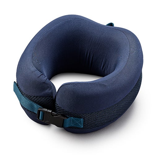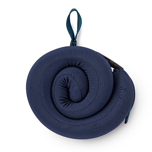 前傾で寝ても首元を締め付けない固さと高さにこだわったネックピロー。使わないときは丸めてコンパクトに収納できます。スーツケースにかけることができるループ付き。
