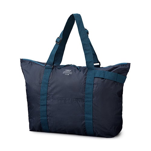 旅行や日常で使える大容量のバッグ。畳むとコンパクトになり、持ち運びに便利です。車や荷物棚からの荷下ろしにも便利なベルト付き。