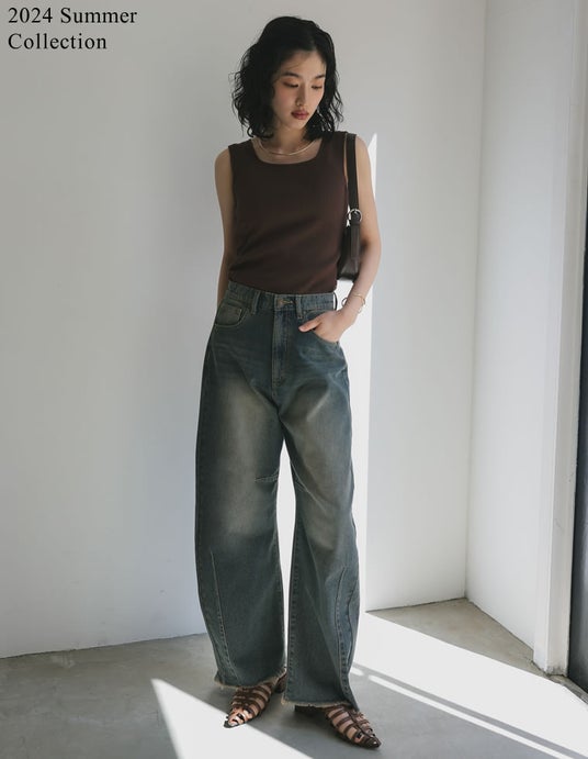 立体的なカーブシルエットで、 旬のレッグラインを描くカーブデニムパンツ。