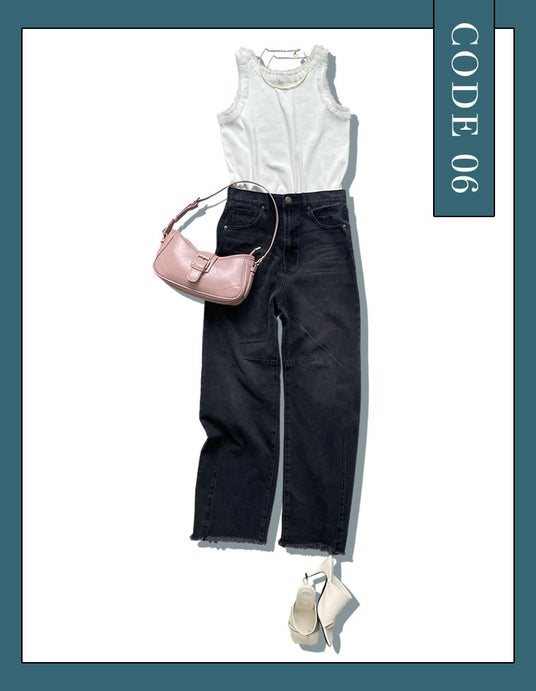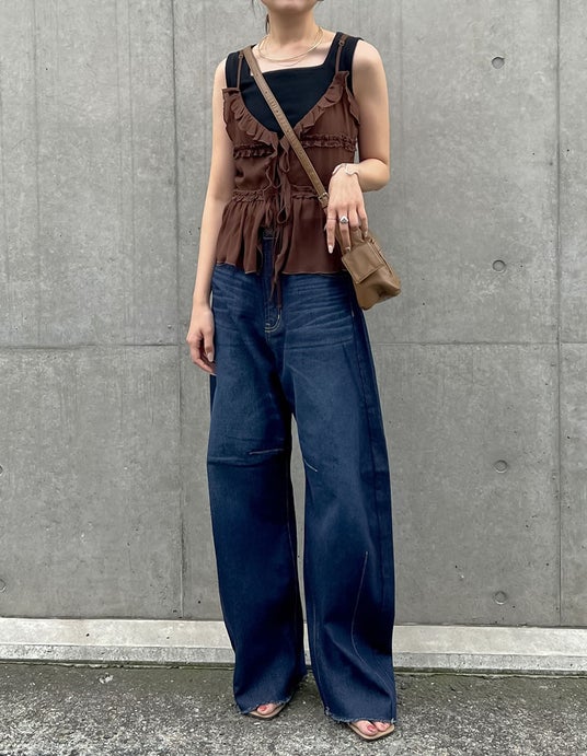 お洒落見えNo.1の大人気デニムに、ヘルシーなフリルアメスリタンクを合わせて。