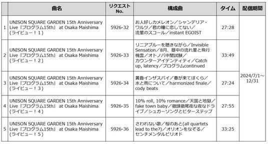 株式会社第一興商は、通信カラオケDAMの最新機種「LIVE DAM AiR/Ai」限定の長尺カラオケコンテンツ「ライビュー!」において、UNISON SQUARE GARDENが2019年に開催した結成15周年記念ライブ「プログラム15th」のライブの模様をそのまま楽しめるカラオケとして、2024年7月1日より12月31日までの期間限定で独占配信します。