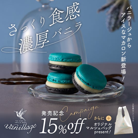 バニラスイーツ専門ブランド「バニラージュ」から、可愛らしい形状の「マカロン」が誕生しました。マカロン1粒に芳醇なバニラの香りを贅沢に詰め込みました。