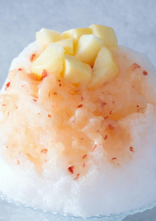 桃を皮ごと使用したソースで爽やかな味わいの丸ごともも氷