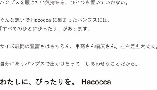 「すべてのひとにぴったり」が見つかるパンプスショップ「Hacocca」の特長