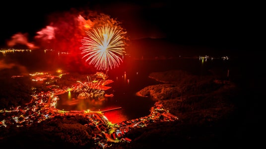 フィナーレに菱浦湾内から打ち上げられる水上花火 (C)中村組