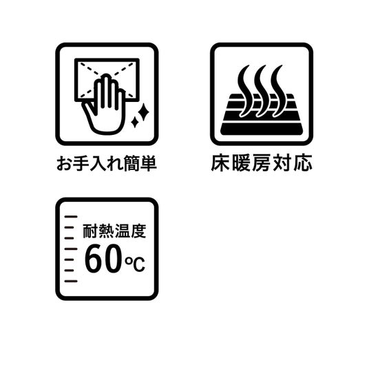 耐熱温度60℃で、床暖房の上でも気にせず使えます。