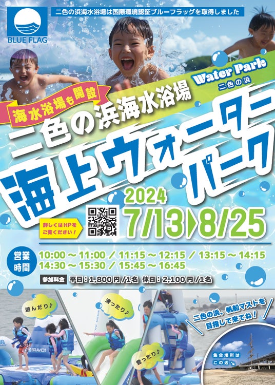 2024年から二色の浜海水浴場は、国際環境認証ブルーフラッグを取得し「きれいで安全で誰もが楽しめる優しい」ブルーフラッグビーチとして開設されます。