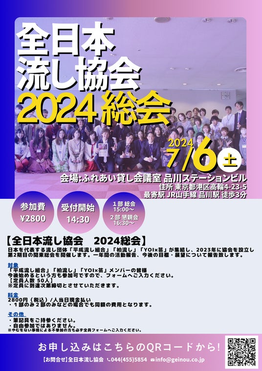 2期目となる今年2024年7月6日(土)に同団体総会が東京都品川区にて開催され、関東在住のメンバーを中心に全国から「流し」猛者達が集結するそう。