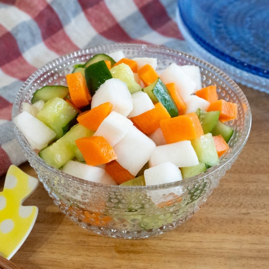 きゅうりとかぶ、にんじんのコロコロ甘酢漬け