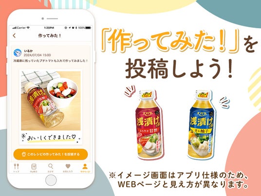 レシピを見て実際に作った料理を投稿できる「作ってみた!」機能。