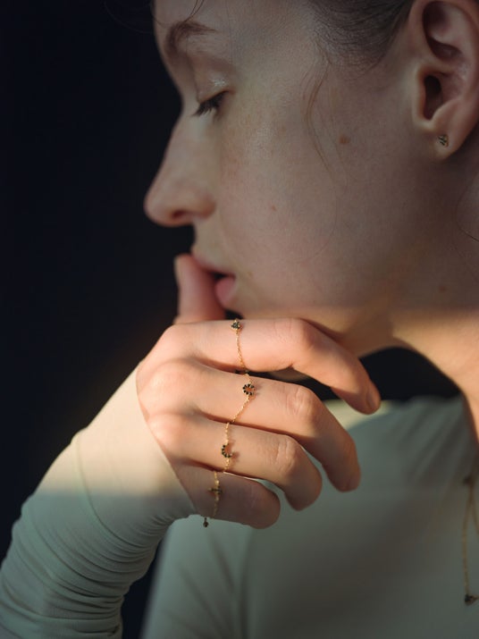 ピアス、ネックレスに加えてWEBSHOP限定のチェーンリングの3種類のラインナップ。