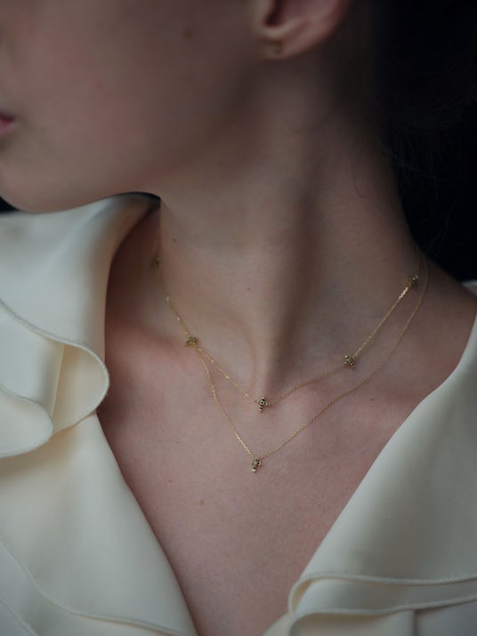 繊細なゴールドにブラックダイヤがあしらわれたモチーフは4種類。