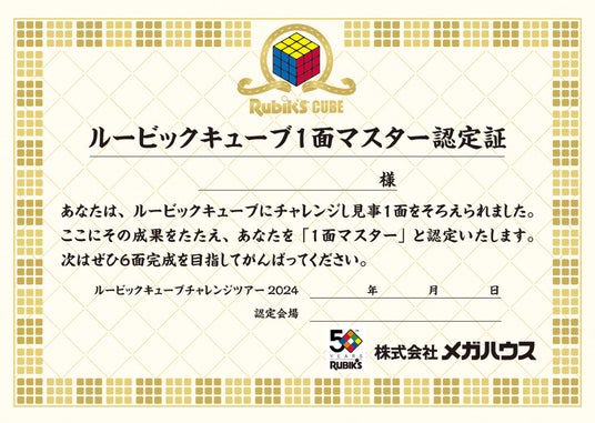 「ルービックキューブ1面マスター認定証」をプレゼントします。