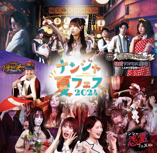 今回が5度目の開催となる、ホラーイベント「ナンジャ怨霊フェス2024」では17時以降に3つのホラーアトラクションが登場し、ニンジャタウンには怨霊フェス名物の「徘徊怨霊」として“怨霊”たちが出現します。体験型謎解きアトラクション「福袋サスペンス劇場~ファーストシーズン完結編!しとめろ容疑者M~」ではサスペンスドラマの主人公のように役者が演じる登場人物たちの話を聞き、推理しながら犯行の証拠を集め、犯人と一騎打ちする体験ができます。また、8月10日(土)~18日(日)の期間限定で、プロのマジシャンがナンジャタウン内でマジックを披露する「ナンジャマジックショー~魔術王国へようこそ~」を開催します。