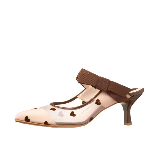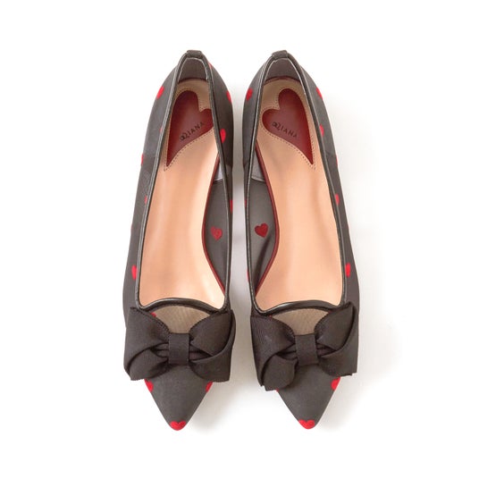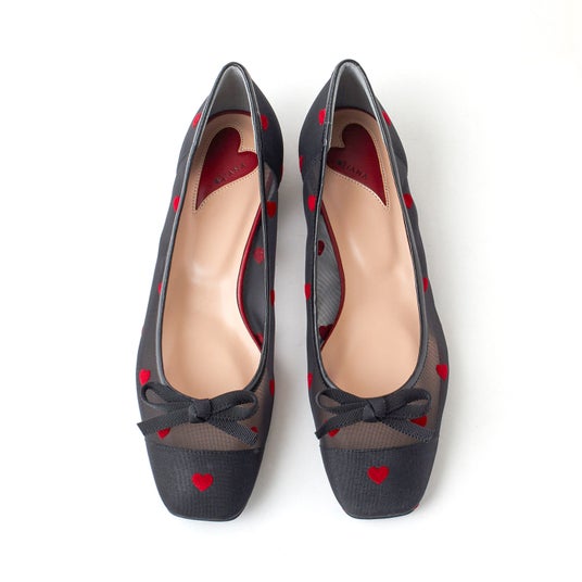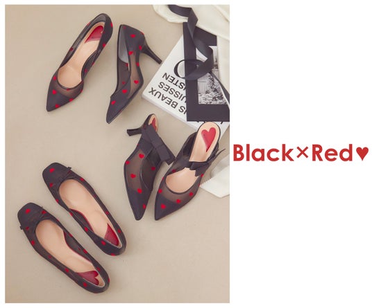 第2弾となる今回は「Sheer&Heart」をテーマに、シューズ5モデル・バッグ1モデルをご用意。シアーなチュール素材にハート柄のフロッキー加工を施して、足元に主役級の可愛さをプラスしてくれるアイテムです。ブラック×レッドの大人レディな配色と、ピンク×ブラウンのロマンティックな配色の2パターンをご用意しております。お好みの色やデザインをぜひお楽しみください。