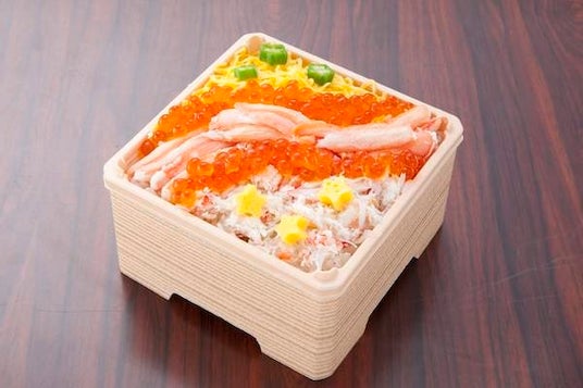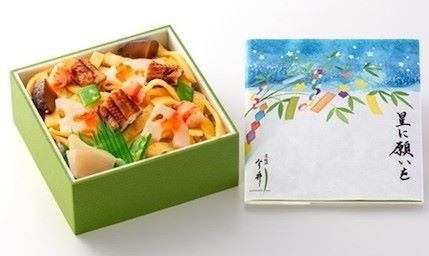 短冊に彩られた七夕の笹飾りをイメージ。ゆかたで夕涼みを楽しみながら味わいたくなるちらし寿司です。
