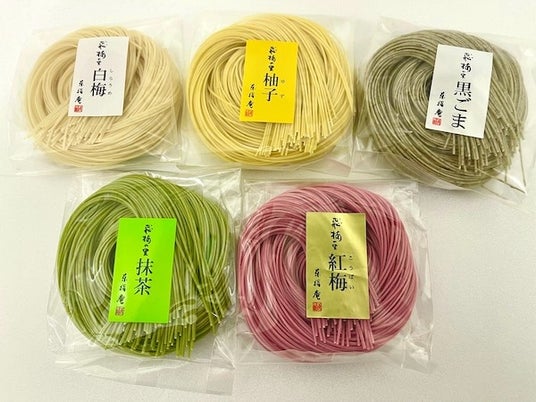 七夕の短冊のようにカラフルな素麺。細いながらも強いコシがあり、なめらかなのど越しです。