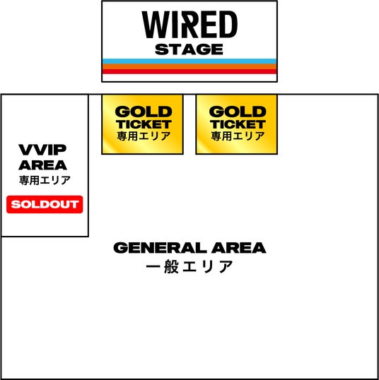 ※ステージ最前エリアへの入場が可能になることは確約となりますが演出の都合上、GOLDチケット専用エリアの形状は変更になる場合がございますのでご了承ください。