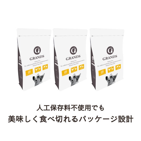 「ペットとヒトの毎日を、健康と笑顔で満たす」をミッションに掲げ、ペットとの暮らしをより豊かにするための商品開発・販売を行うGRANDS株式会社(本社:東京都千代田区東神田、代表取締役:嶽本泰伸)は、2024年7月8日(月)から初のプレミアムドッグフードを販売開始いたします。