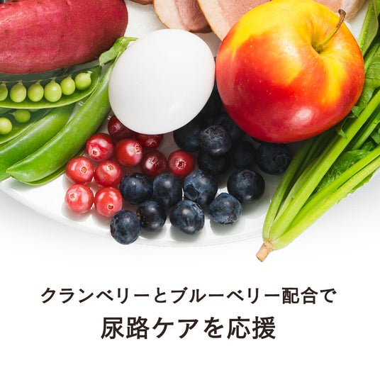 尿路系の健康維持に役立つと言われているクランベリーやブルーベリーを配合しました。