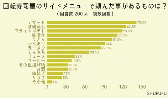 男女200人に「回転寿司のサイドメニュー」に関するアンケート調査を行った所、