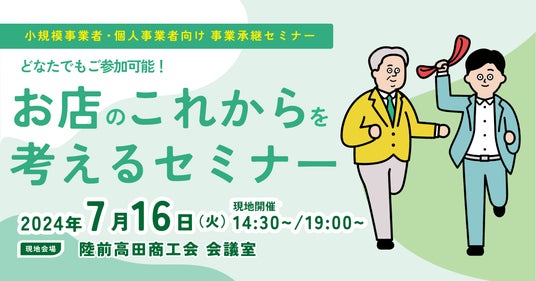 事業承継マッチングプラットフォーム「relay(リレイ)」を運営する株式会社ライトライト(宮崎県宮崎市 / 代表取締役:齋藤 隆太 )は岩手県陸前高田市の第三者承継の推進に向けて、陸前高田市内の後継者募集に特化した特設ページ「relay the local 陸前高田市」の共同運営を行っている岩手県陸前高田市から委託を受け、7月16日(火)に小規模事業者・個人事業者向け事業承継セミナー「お店のこれからを考えるセミナー」を開催することをお知らせいたします。