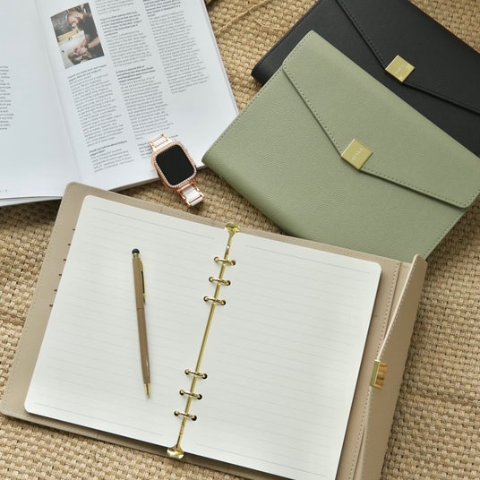 A5サイズのため持ち運びにも便利で、落ち着いた色合いのカバーが魅力的です。サイドポケットには用途に応じてさまざまな物を収納可能です。