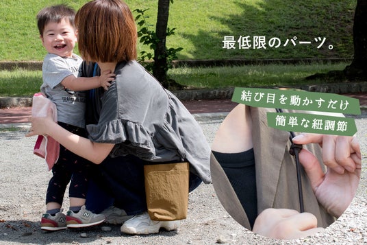 こどもを抱っこする際にも肩紐部分には金属パーツを使用していないので安心してお使い頂けます。