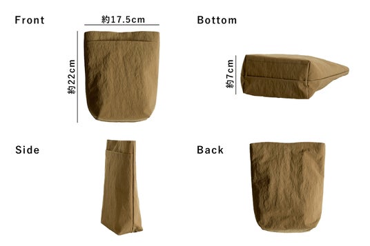 マチが広く生地もしっかりしているので、立てて置いた時にも崩れにくく、