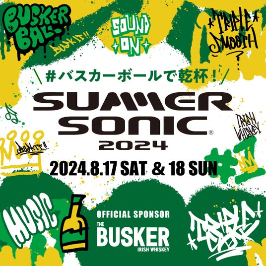 株式会社ウィスク・イー(東京都千代田区 代表取締役社長 遠山公隆)が輸入代理店を務めるアイリッシュウイスキーブランド『THE BUSKER(ザ バスカー)』(以下、バスカー)は、都市型ミュージックフェスティバル「SUMMER SONIC 2024」(以下、サマソニ)のオフィシャルスポンサーとして、東京・大阪両会場にて“バスカー×ミュージック”をコンセプトにしたブースを出店。昨年も行列となった、暑い真夏にピッタリの爽やかなバスカーオリジナルカクテルの提供はもちろん、音楽や仲間と過ごす最高の時間を演出するコンテンツをご用意いたします。