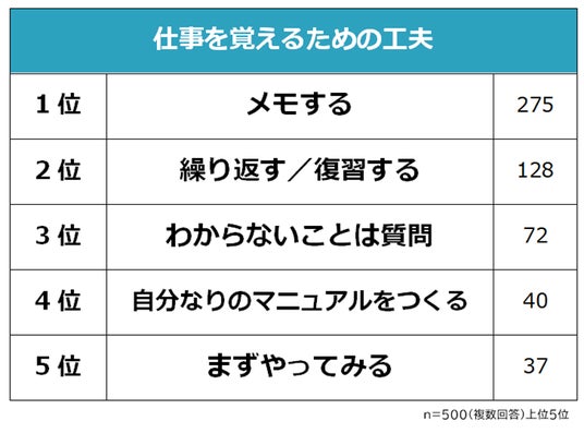 ・仕事を覚えるための工夫1位は「メモする」
