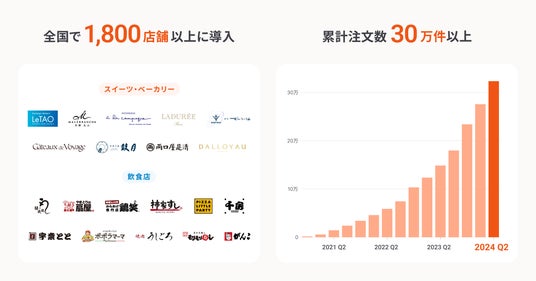 現在全国1,800店舗以上で導入されており、これまでの累計注文回数は30万件を超えております。(2024年6月末日時点)