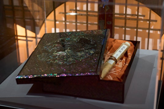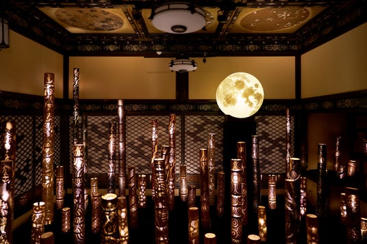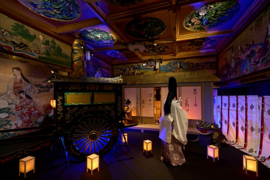 おとぎばなしは、架空の旅亭「雅楼」から古い巻物が発見されるところから始まります。竹取物語、葛の葉伝説、天女の羽衣など、巻物に綴られた不思議な物語を、7つの部屋に展示。本企画展のために作曲されたオリジナル音楽に耳を傾けながら、ストーリーを五感で受け止めると、自分自身が物語の中に存在するような体感を得られます。