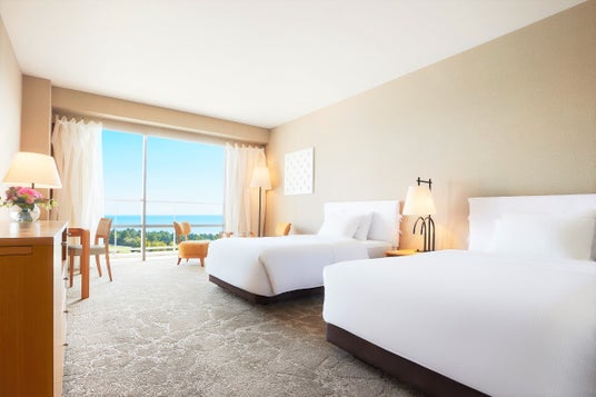 世界的な建築家、安藤忠雄氏が設計とグランドデザインを手がけた環境創造型施設「淡路夢舞台」の豊かな自然に佇む、グランドニッコー淡路。やわらかな陽光が差し込む客室には、窓の外に広がる青い海と空、緑に溶け込むような開放感あふれる空間が広がります。都会の喧騒を離れ、御食国「淡路」が誇る美食のおもてなしとともに、非日常の寛ぎを味わう特別なひとときをお過ごしいただけます。<施設概要>