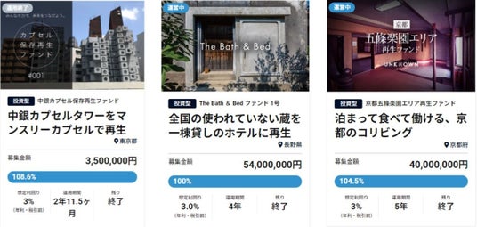 開設にかかる費用は、当社が運営する地域活性ローカルファンド「ハロー! RENOVATION」で調達します。事業に対する共感や応援、参加をコンセプトとし、一般の投資家だけではなく、自治体や地域金融機関、地元企業から大手企業までさまざまなステークホルダーが事業に参加できる仕組みです。投資される皆さんは、いわば「カプセルオーナー」。リターンのほかに、投資家限定の特典も設定されます。2018 年には中銀カプセルタワービル(解体前)の一つのカプセルをリノベーションして賃貸事業を行うプロジェクトでも当ファンド活用し、多くのカプセルファンが投資や関連イベントに参加しました。