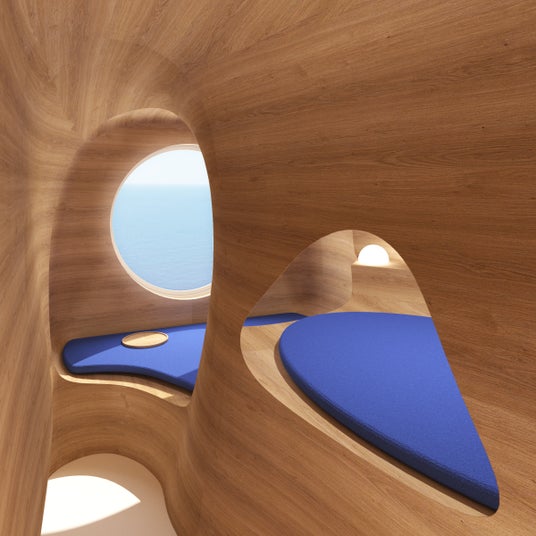 大木にある 「洞(うろ)」は、中に引き込まれるような魅力がある。内部は静けさと程よい暗さの中で、 葉音や鳥の囀りに満たされる。カプセルの持つ「ネスト」のような性質と「洞」の空間性を掛け合わせ、未体験空間への冒険心を刺激し、自然と一体となれる空間。