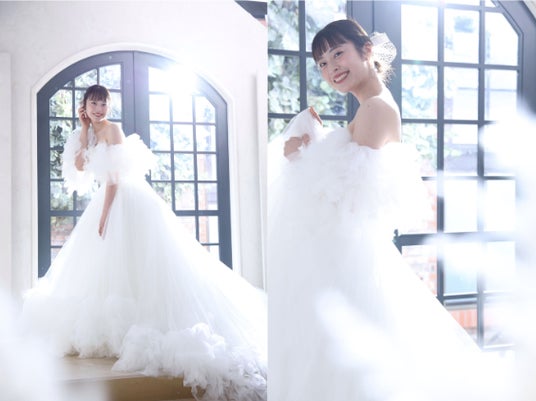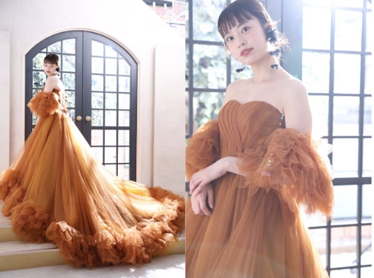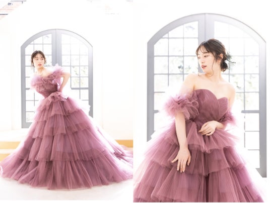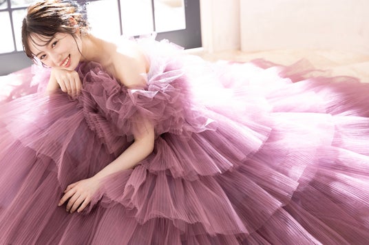 柔らかなチュールを何枚も重ねた圧倒的ボリューム感が華やかなドレス