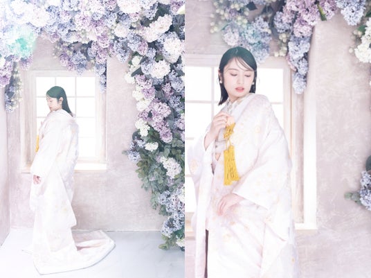 真っ白な白無垢は伝統的で素敵ですが、色のある色無垢も新しいスタイルで提案します